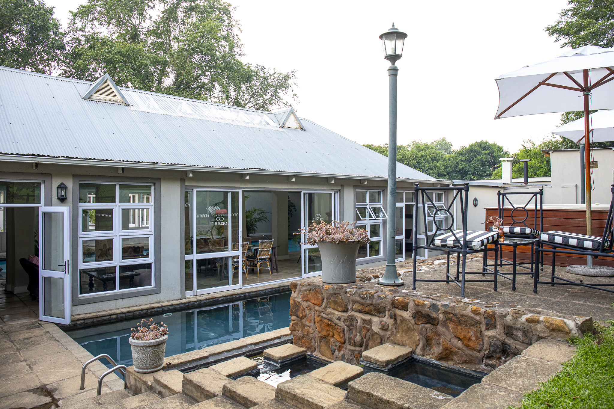 Fordoun Spa is in the heart of Nottingham Road, Midlands Meander and boasts a team of experts that include skilled masseuses, Reiki and Bio-energy specialists and highly trained aestheticians. The spa features internationally acclaimed treatments such as the Rasul, (a Turkish steam and clay treatment room), a saline floatation pool, an indoor and outdoor swimming pool, a gymnasium, sauna, Jacuzzi, steam room, hydrotherapy, and two couple’s treatment suites with hydrotherapy baths and ozone therapy treatment.